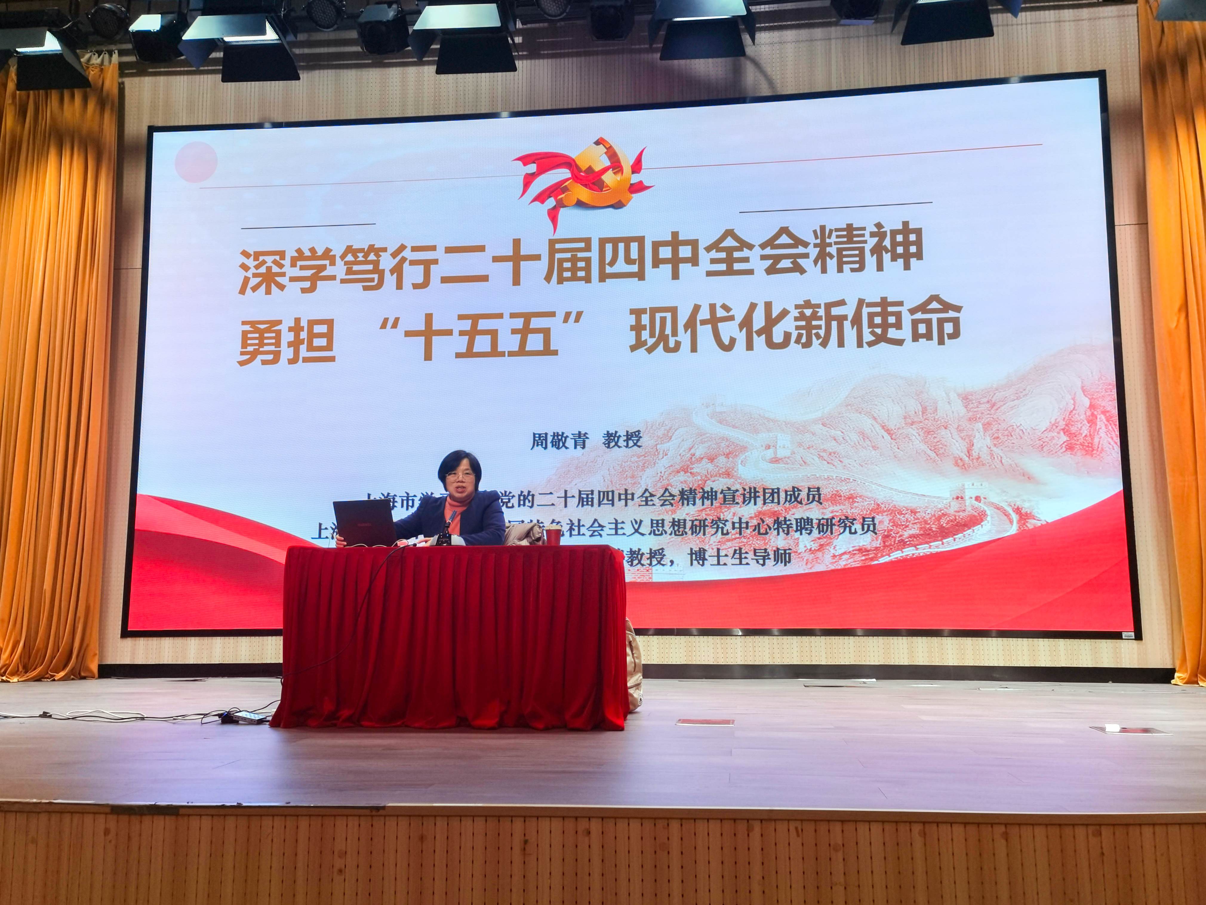 会议伊始,周敬青教授以《深学笃行二十届四中全会精神 勇担“十五五”现代化新使命》为题,带来了一场深刻的政治学习报告。她紧扣二十届四中全会精神核心,立足“十四五”圆满收官、“十五五”全面启幕的关键节点,系统回顾了“十四五”时期各领域取得的历史性成就与实践基础,深入解读了“十五五”规划的核心要义和以高质量发展为主题的指导思想及核心原则,明确了各领域的战略任务与推进路径。同时,周教授提出,要以“学深悟透”筑牢思想根基,以“对标对表”细化任务清单,以“问题导向”破解基层难题、以“党建引领”凝聚工作合力等举措,切实把全会精神落到实处,不断开创中国式现代化建设新局面。
