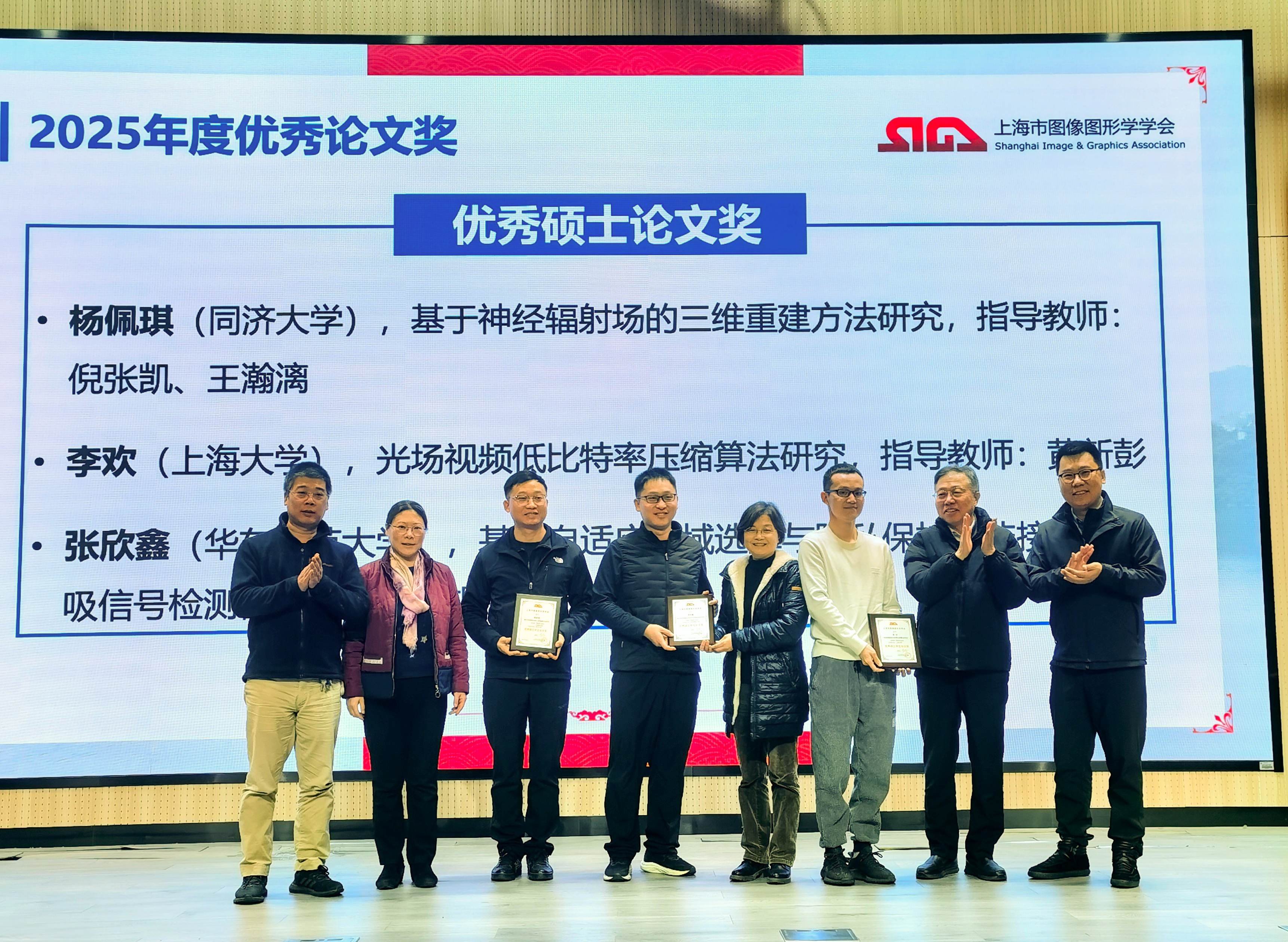 会议最后,翟广涛理事长宣布了2025年度学会优秀博士、硕士学位论文奖获奖名单,并为获奖学子举行颁奖仪式,表彰他们在图像图形学领域的创新性研究成果,鼓励青年学者深耕学术、勇攀高峰。